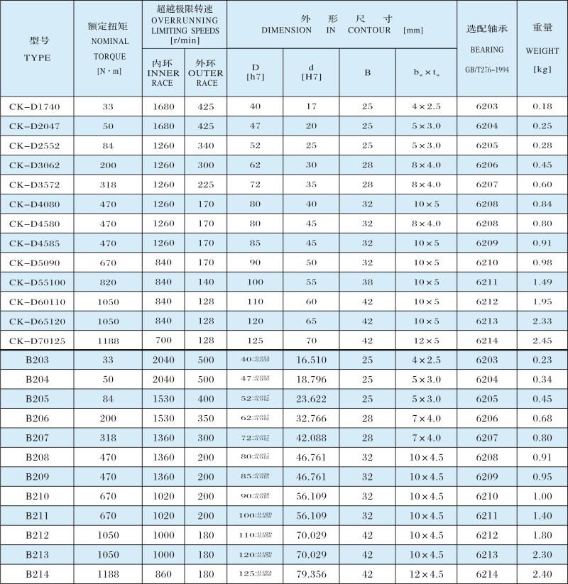 CK-D及B200系列為無內(nèi)環(huán)無軸承支撐的楔塊式單向離合器。