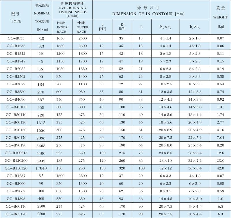 GC-B系列為無軸承支撐滾柱式單向離合器,外形尺寸與63系列標準軸承相同。