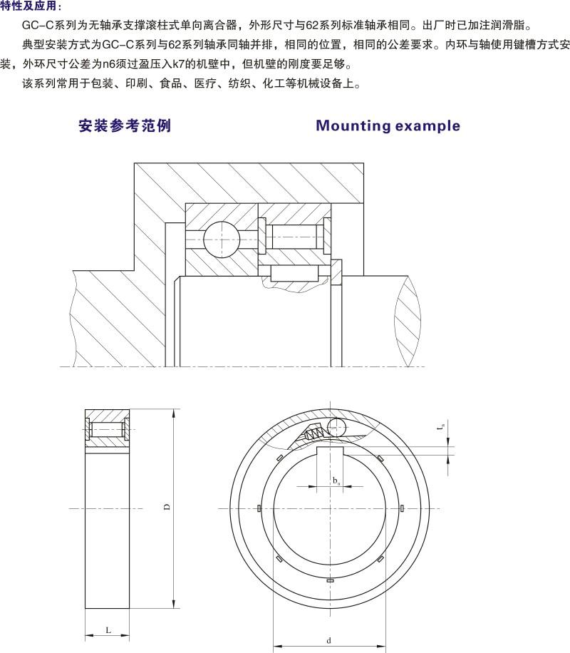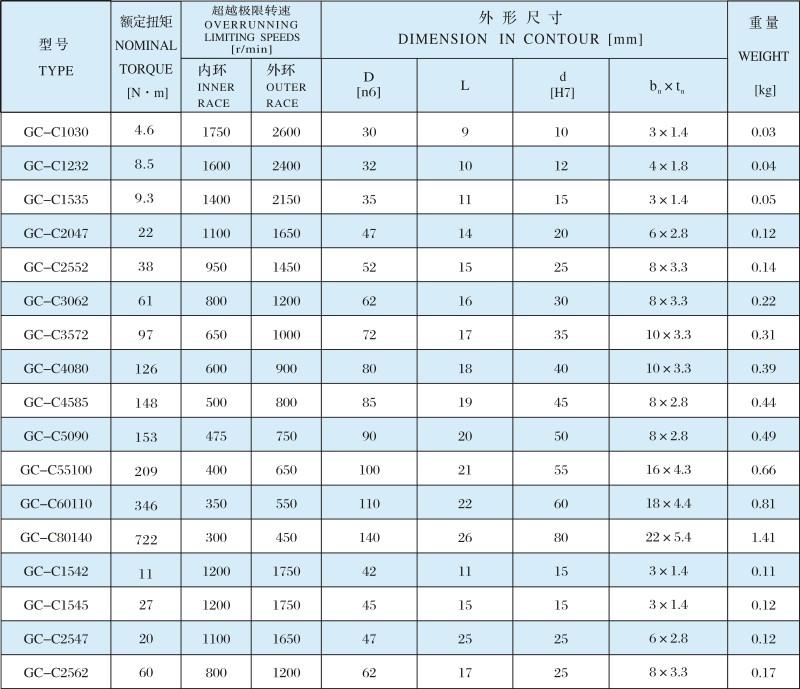GC-C系列為無軸承支撐滾柱式單向聯(lián)軸器,外形尺寸與62系列標(biāo)準(zhǔn)軸承相同。
