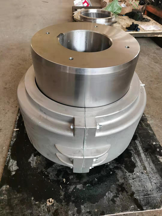 蛇形彈簧聯(lián)軸器其主要結(jié)構(gòu)是由兩個(gè)半聯(lián)軸節(jié),兩個(gè)半外罩,兩個(gè)密封圈及蛇形彈簧片組成。運(yùn)轉(zhuǎn)時(shí),是靠主動(dòng)端齒面對(duì)蛇簧的軸向作用力帶動(dòng)從動(dòng)端,來傳遞扭矩,如此在很大程度上避免了共振現(xiàn)象發(fā)生,且簧片在傳遞扭矩時(shí)所產(chǎn)生的彈性變量,使機(jī)械系統(tǒng)能獲得較好的減振效果,其平均減振率達(dá)36%以上。它是靠蛇簧嵌入兩半聯(lián)軸節(jié)的齒槽內(nèi)來傳遞扭矩,聯(lián)軸器以蛇形彈簧片嵌入兩個(gè)半聯(lián)軸節(jié)的齒槽內(nèi),來實(shí)現(xiàn)主動(dòng)軸與從動(dòng)軸的鏈接。