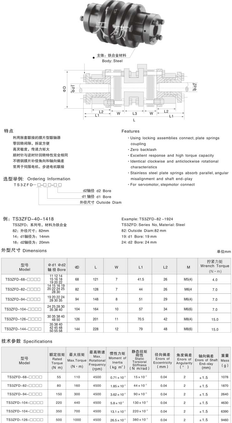 • TS3ZFD多節(jié)脹套法蘭膜片聯(lián)軸器簡介: