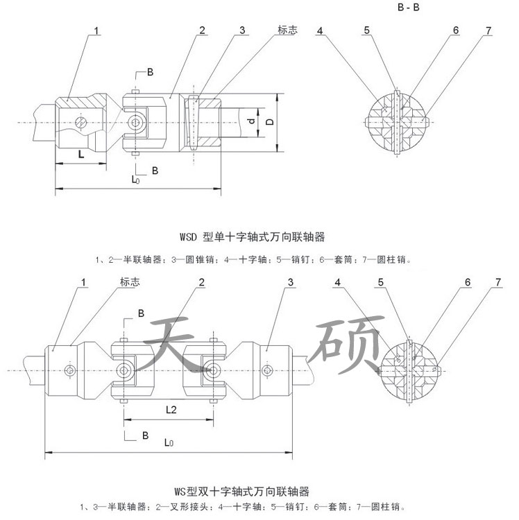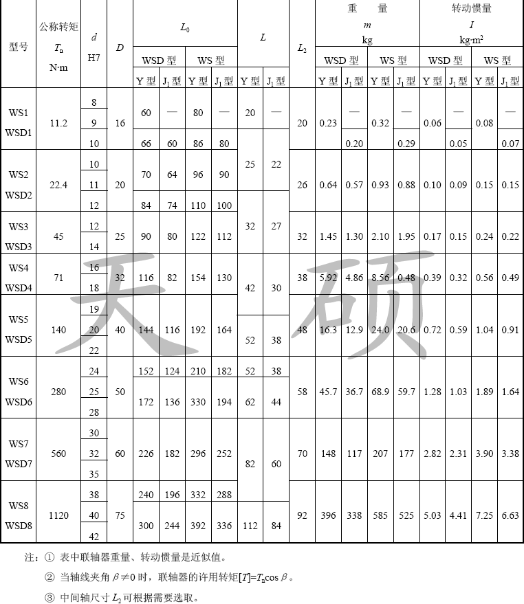 本萬向聯(lián)軸器適用于聯(lián)接兩軸軸線夾角β≤45°的傳動(dòng)軸系;傳遞公稱轉(zhuǎn)矩11.2~1120N·m 的單十字軸萬向聯(lián)軸器和雙十字軸萬向聯(lián)軸器。