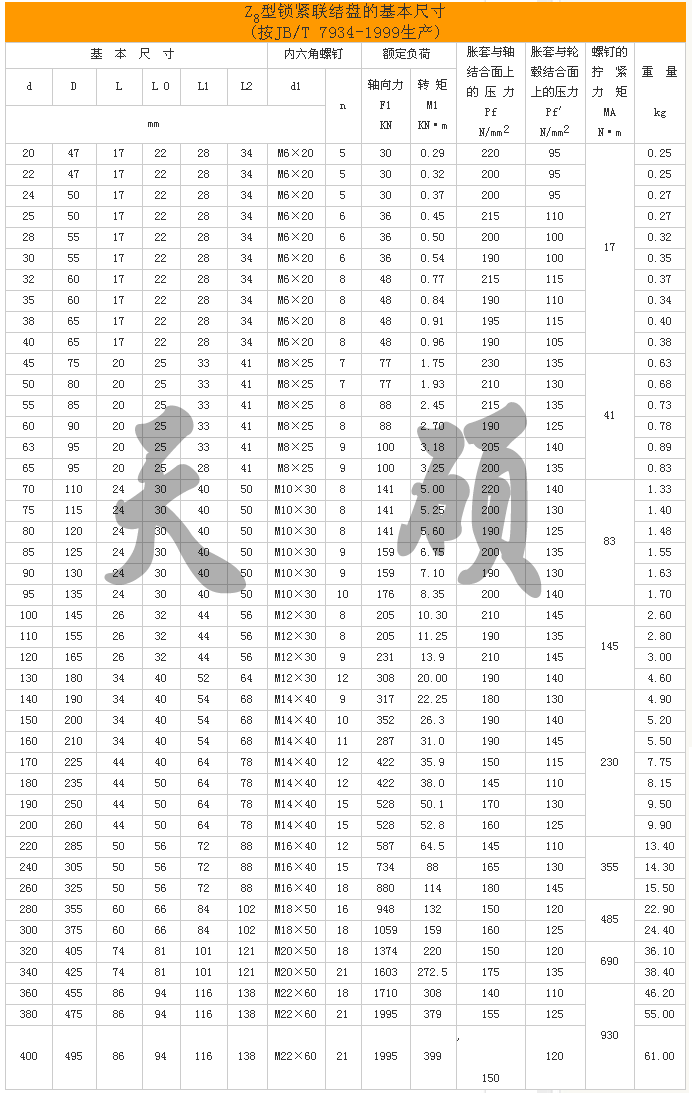 ■Z8型脹緊聯(lián)結套鎖緊聯(lián)結盤的基本尺寸 (按JB/T 7934-1999生產(chǎn))