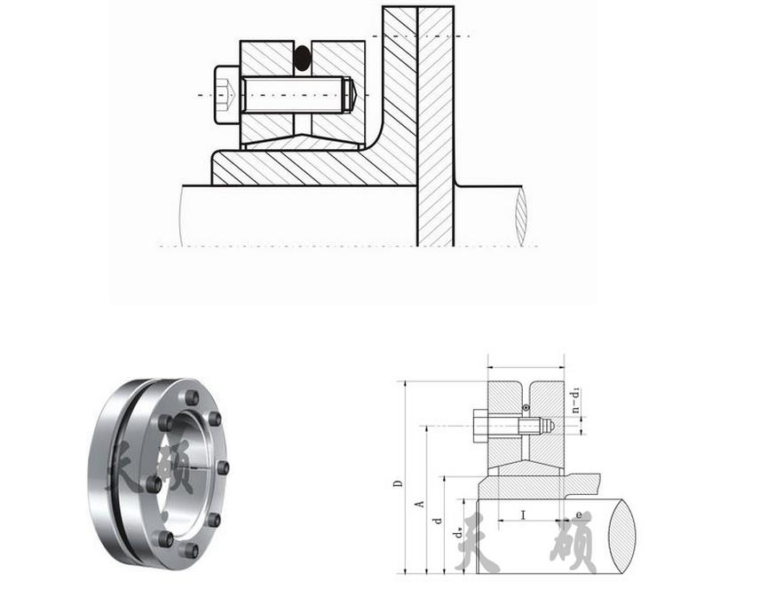 ●脹套夾緊時,各配合表面壓力很大并完全密封,避免了配合面的銹蝕。拆卸時,擰松螺栓,配合面自動放松,軸套及錐形圈自動回復(fù)到原始尺寸