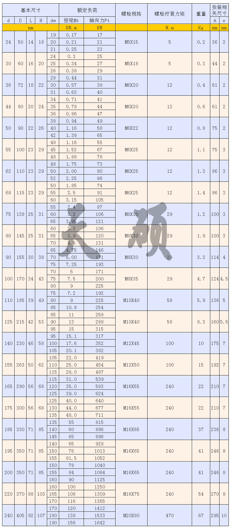 ●此裝置拆裝簡單,適用于中低速傳遞扭矩
